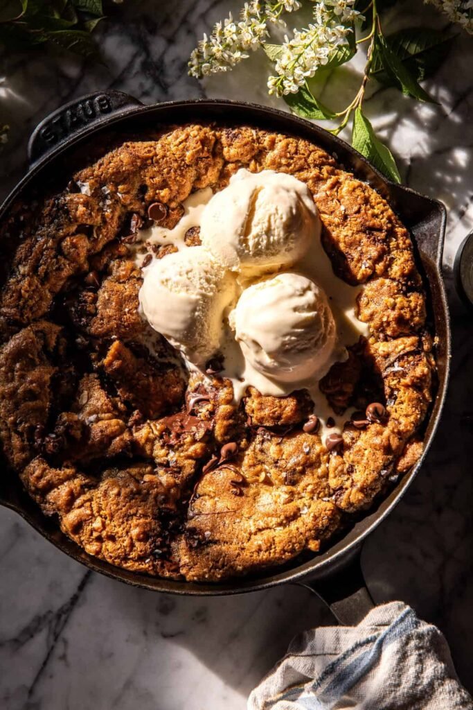 There’s just something about a huge cookie, fresh out of the oven, with ice cream melting on top. It’s the kind of dessert that pulls everyone together at the table. And for some reason, I always crave skillet cookies during the summer. Probably because it’s the perfect excuse to pile on all that ice cream.