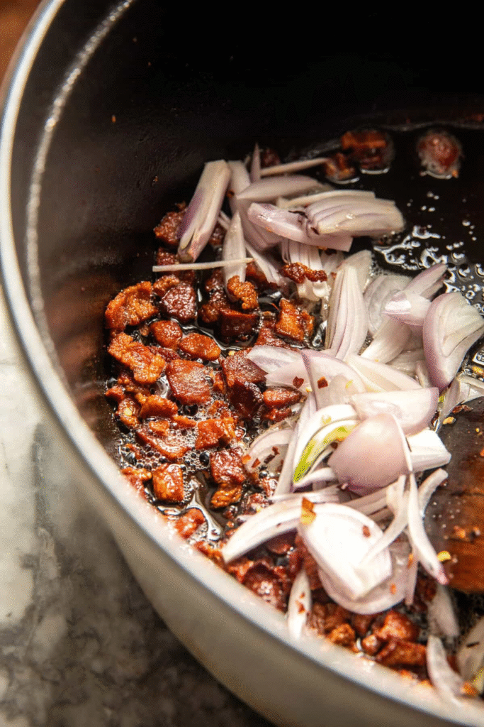 - Bacon – Because everything tastes better with bacon, and the rendered fat adds insane depth to the broth.
