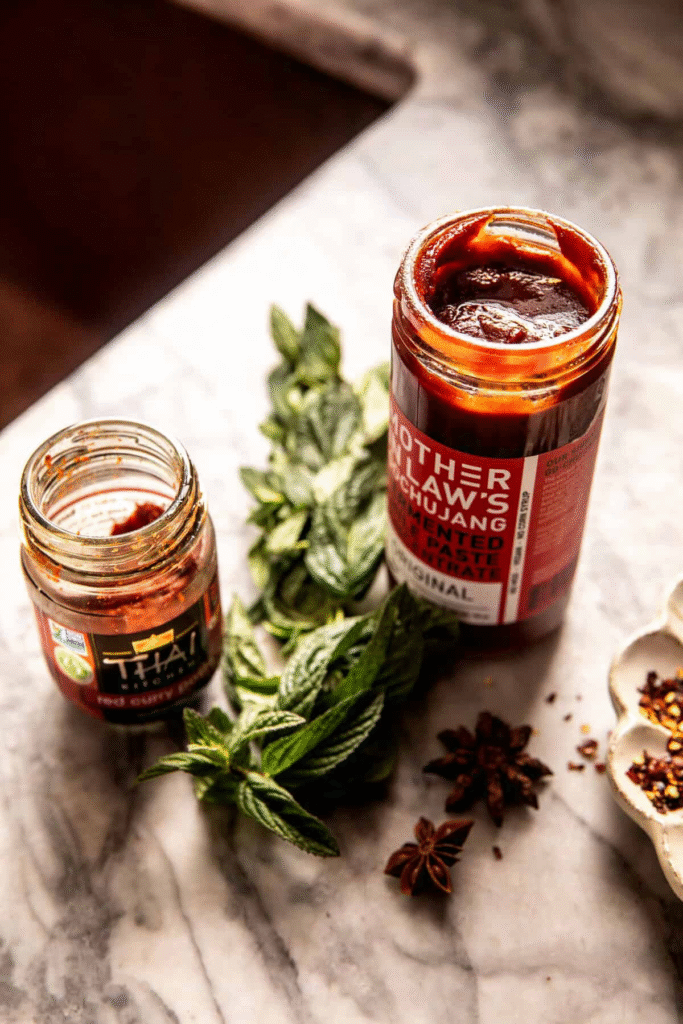 - Thai red curry paste – For a touch of heat and complexity.