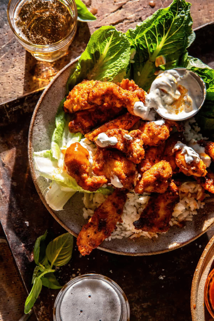 This chicken is amazing with homemade French fries or sweet potato fries. You can also serve it over rice with a salad or toss it right into a salad—so many ways to enjoy it! Just don’t skimp on the ranch.